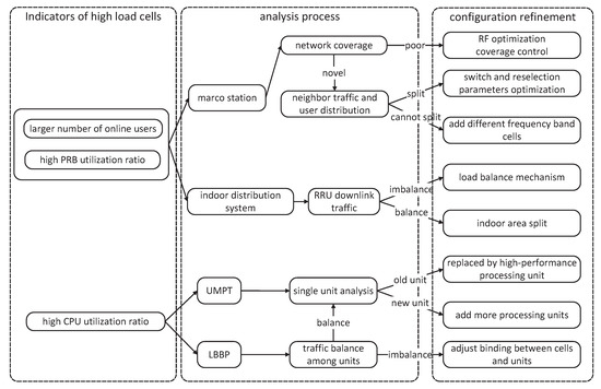 Main flow of network configuration refinement for high traffic load cells.