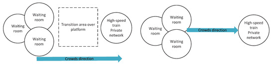 The entries of high-speed railway stations are important areas that should be carefully considered regarding the access policies. The main refinement is to use different access policies according to the station size. The area division of large-scale and small-scale stations are presented in Figure 9.