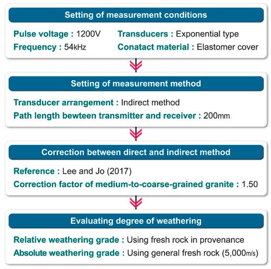 - Lee, Y.; Keehm, Y.; Lee, M.; Han, J.; Kim, M. Assessment and calibration of ultrasonic velocity measurement for estimating the weathering index of stone cultural heritage. J. Korean Earth Sci. Soc. 2012, 33, 126–138. [Google Scholar] [CrossRef][Green Version]
