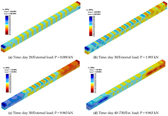 - Džolan, A.; Kožul, M.; Harapin, A.; Ćubela, D. Analysis of the concrete shrinkage effects on the real behaviour of the spatial concrete and reinforced concrete structures using the thermal analogy. Eng. Comput. 2019, 37, 1451–1472. [Google Scholar] [CrossRef]