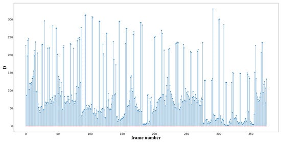 We define the set of all video frames as , and after grayscaling the , it is expressed as . Then, the frame-to-frame difference between frame i and frame , denoted as , is shown in Equation (3).