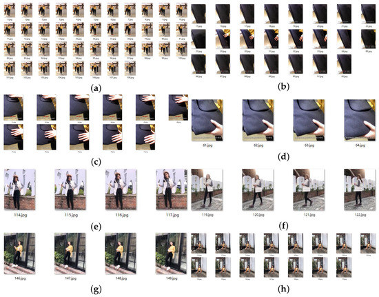 We consider that for the product, the details are the most important part, and the overall effect is second. Therefore, commodity video frames are divided into four categories: the first category shows commodity details reflecting texture, material, workmanship, etc.; the second category shows the overall effect of the commodity on the model; the third category contains a lot of information unrelated to commodities, such as scenes and models’ faces; the fourth category is the distorted image. Thus, the first and second categories are defined as the keyframe of the video. We randomly selected 3 videos from each category in the dataset, a total of 12 videos, and then obtained the initial clustering by ACBD algorithm. Next, we corrected and divided the clustering results into the four categories mentioned before to obtain 790 images of the first category, 247 images of the second category, 58 images of the third category, and 45 images of the fourth category.
