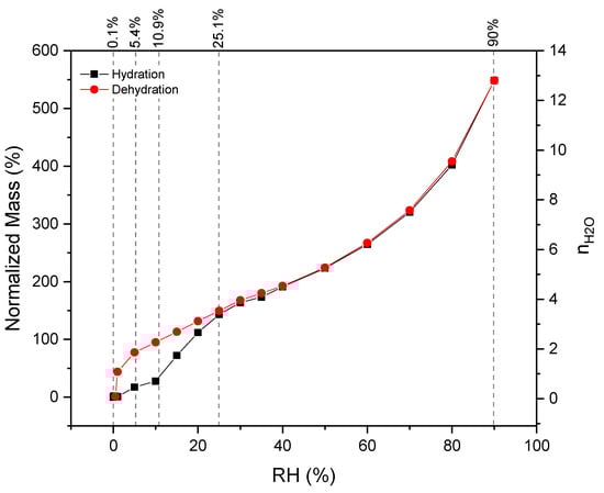 2.2. Hydration/Dehydration Cycle through Thermogravimetric Dynamic Vapor Sorption System
