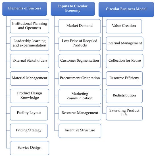 Utilizing various resource recovery strategies, in which end-of-life products are transformed into materials available for manufacturing through recycling and upcycling services, requires the development of different reverse cycles [58]. Reverse cycle is defined as “reverse cycles can be translated into viable business” (i.e., value creation for the company and its customers) [58]. According to the producers, employing recycled materials will substitute virgin materials, lower production costs, and allow for more significant product differentiation [58]. CEBMs are a critical element necessary for the development of a CE. However, little is known about how small and medium enterprises develop and deliver sustainable innovation within the context of new CEBMs [22].