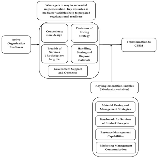 The literature conceptualizes the BM as a process and outcome with organization performance implications. Among these studies, e.g., [76] divided the BM process into three streams, antecedents, process, and effect. We argue that the change process in firms is associated with identifying antecedents and strategies for implementing CEBM. Further, Santa-Maria et al. [22] developed a framework and classified CEBM innovation as an organizational change process. This literature brings attention to the conceptual development of CEBMs and should be considered in future studies, as it provides a foundation for understanding CEBM transition management [77]. For example, Lüdeke-Freund and Dembek [78] discussed the state of sustainable business models. Tura et al. [79] identified the internal and external barriers and drivers in various areas of an organization, such as technological and informational, organizational level, social, and environmental. Strong DCs necessitate good business model design [43]. Key strategies, resources, and capabilities for implementing circular economy in industrial small and medium enterprises and [11] identified DCs, as an antecedent of CEBM implementations. Foss and Saeb [80] caution that implementing BM in an organization requires a change process in its existing practices.