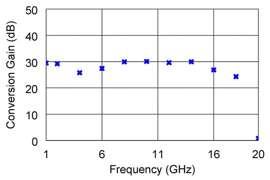 Due to the accurate identification of the required components, the proposed system exhibits the flat conversion gain shown in Figure 6.