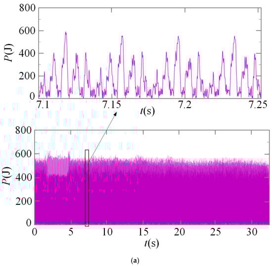 In order to unveil the dynamic characteristics of the energy consumption of the main cutting force of the milling cutter, the instantaneous energy consumption of the main cutting force of the milling cutter was obtained by using Equations (30) and (31), as shown in Equation (33).