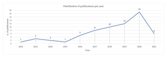 This systematic literature review investigated the analysed studies published in the past 11 years on BIM-FM in the public environment. Publications on the topic have significantly increased over the period, from 1 in 2010 to 19 in 2020, evidencing an expansion of investigations on the topic that can be partially ascribed to external factors linked to the consequences and effects of the pandemic. Thus, the COVID-19 pandemic has brought to light aspects, such as the check of occupancy levels, control of transportation flows, entry supervisions, etc., that are strongly connected to facility management tasks and are becoming more important in the COVID-19 management context (Table 5).