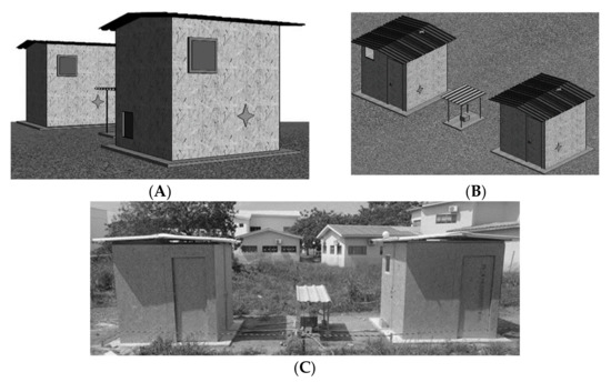 The passive cooling techniques were implemented in cell C1 and cell C2 remained unchanged, to be used as a control (Figure 3). The test cells present low thermal inertia, not allowing, therefore, an assessment of the impact of the mass in the stabilization of the temperature. On the other hand, they correspond to a growing trend of construction in the Palmas, Brazil, thus increasing the practical interest of the study.
