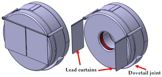 Modified gantry of CereTom with lead curtain and dovetail joint design.