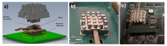 - Stone, R.; Chen, R.; Rahn, J.; Venkataraman, S.; Wang, X.; Schmidtke, K.; Stewart, J. Co-packaged Optics for Data Center Switching. In Proceedings of the 2020 European Conference on Optical Communications (ECOC), Brussels, Belgium, 6–10 December 2020; pp. 1–3. [Google Scholar] [CrossRef]