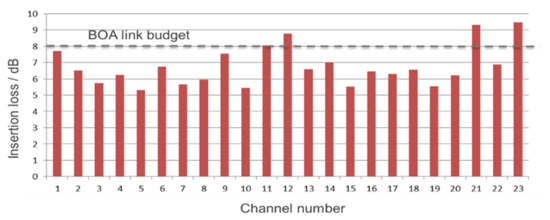 Insertion loss measurements of complete end-to-end link from BOA1 to BOA2.