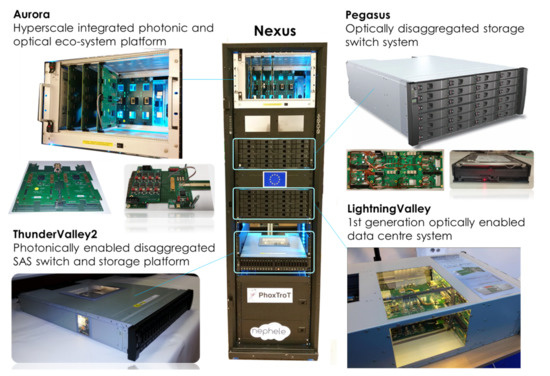 A converged rack-scale platform, “Nexus”, was developed based on the FP7 PhoxTroT project to support the different fully functional optically enabled data storage and switch platforms and provide an interconnection matrix, which would allow them to be characterized and validated for different lengths and configurations of optical interconnects. In addition to the functional optically enabled systems, there is provision for the universal optical interconnect platform, “Aurora” described in the previous section.