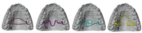 - Burstone, C.J.; Manhartsberger, C. Precision Lingual Arches. Passive Applications. Am. J. Orthod. 1981, 80, 1–16. [Google Scholar] [CrossRef]