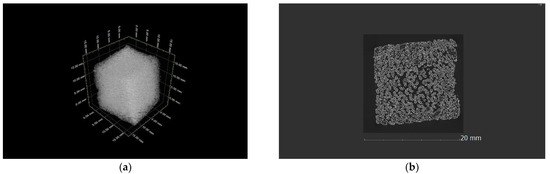 In Figure 11a, at a pore density of 45 PPI, the three-dimensional microstructure of the reticulated porous zirconia reconstructed by µ-CT is shown. A typical cross-section of the µ-CT reconstruction is shown in Figure 11b. The µ-CT image indicates that the reticulated porous zirconia has highly interconnected pore channels. Macro voids, which may be caused by non-optimized process conditions, are not shown in Figure 11.