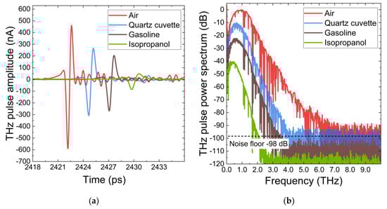 - Arik, E.; Altan, H.; Esenturk, O. Dielectric Properties of Diesel and Gasoline by Terahertz Spectroscopy. J. Infrared Millim. Terahertz Waves 2014, 35, 759–769. [Google Scholar] [CrossRef]