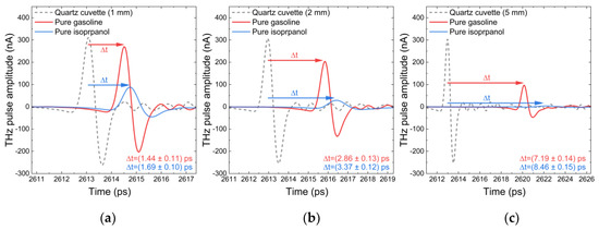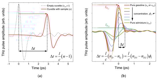 3.3. Investigations of THz Pulse Time of Flights in Gasoline Solutions with Isopropanol