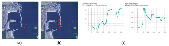 13]. However, there are several factors, such as the natural environment and harbor entry/departure rules that have been defined for each harbor in the self-driving vessel’s learning, and this learning must be learned through surrounding vessels. This makes it difficult to establish an environment capable of learning human-level rules through learning [