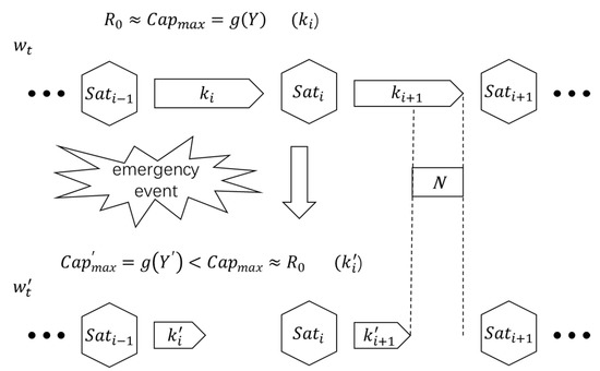 As shown in Figure 3, when the metro breaks down suddenly, the transportation capacity of the metro will decrease, but the passenger flow demand will not be affected. Currently, remains unchanged, . The difference between the two is the passenger flow stranded in the station due to the emergency, that is, .