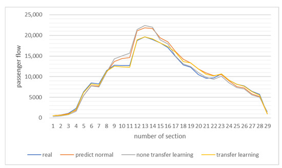 Because the neural network based on LSTM is one of the common schemes for passenger flow prediction, we take the LSTM network without migration learning as the control group. In this experiment, we compare the results of using transfer learning and not using transfer learning to prove the effectiveness of the experimental design.