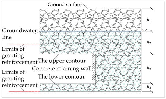 - In actual construction, the grouting disc can be reserved in the follow-up cycle so the pouring thickness of the concrete retaining wall can be appropriately reduced. Currently, decisions on how to reduce the thickness are based solely on engineering experience and the advantages and disadvantages of the grouting effect. Thus, theoretical research must be further conducted.