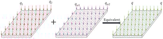 Considering the slight difference between q1 and q2 and between qw1 and qw2, and according to the principle of resultant force equivalence [25], this can be equivalent to Equation (5):