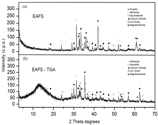 XRD pattern; (a) EAFS; (b) EAFS—TGA.