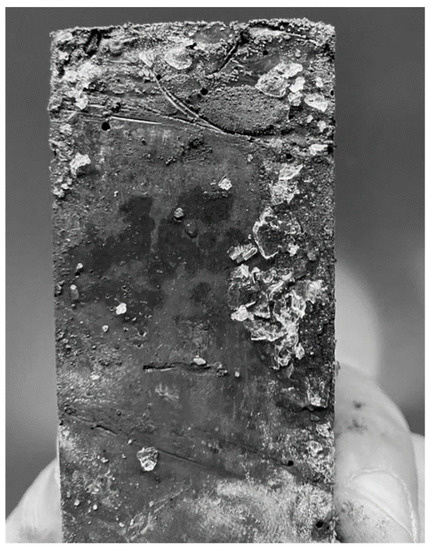 This material presents an apparent density of 3770 kg/m3. The oxide chemical composition of the raw material, obtained from X-ray fluorescence (XRF), is shown in Table 4. The studied EAFS contains 28.5% of Fe2O3, 28.2% of CaO, 17.7% of SiO2, and 10.1% of Al2O3. The high amount of iron in EAFS could induce magnetic properties on AAEAFS concrete [49] and it was confirmed to be a strongly magnetic precursor with the use of neodymium magnets.