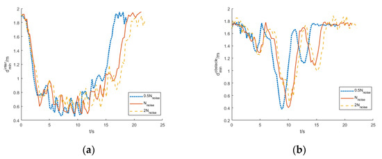 Comparison of minimum distance under different level disturbances, (a) the minimum distance between robots, (b) the minimum distance between robot and obstacle.