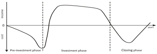 Schematic diagram of financial flows during the entire mine life cycle (own material based on Paulo [9]).