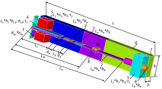 In [21], modeling of the cantilever-type PEG with symmetrical and asymmetrical location of proof mass was presented, and the linear theory of elasticity and electrodynamics was used, taking into account the dissipation of energy as well as the equations of motion in the acoustic approximation. The built FE model was numerically realized in the ANSYS software.