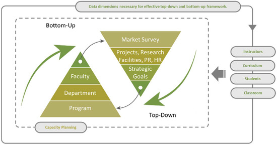 In 2010, Dahlan and Yahaya developed a decision support system to meet an academic program’s supply and demand needs contributing directly to optimal resource management. A system dynamics model was devised to achieve the goals [].