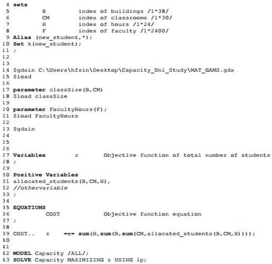 An excerpt of code used in GAMS to develop the top-down part of the planning framework.