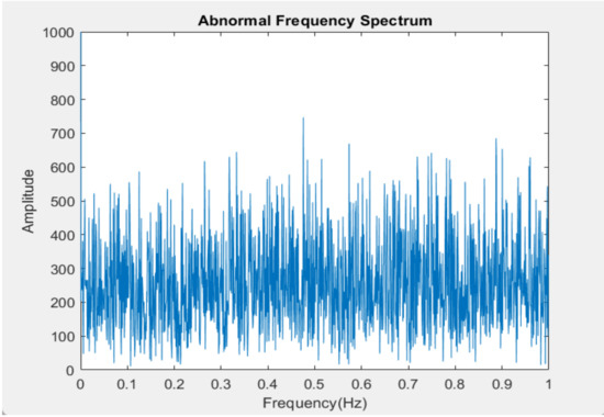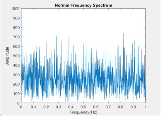 Figure 4 and Figure 5 are generated by the whole set of the vibration data of FFT. Figure 4 is a set of normal vibration data while Figure 5 is an abnormal data set. It can be seen that both figures do not have uniquely identifiable frequencies to distinguish them from the other data set.