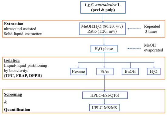 Flow chart of the extraction of phenolic compounds from C. australasica L.