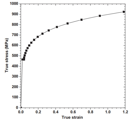 The true stress–strain curve of an API 5L X65 pipeline, as shown in Figure 4, was used to define its material property in ANSYS. Static, non-linear, structural analysis (Newton–Raphson) was used in the FEM to account for the non-linearity of the material.