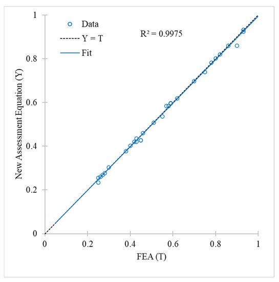 The R2 value of the assessment equations when tested against an unseen dataset was 0.9975, which indicates good correlation, as shown in Figure 8. The assessment equation had an MSE of 0.000126 and an MAE of 0.00699.