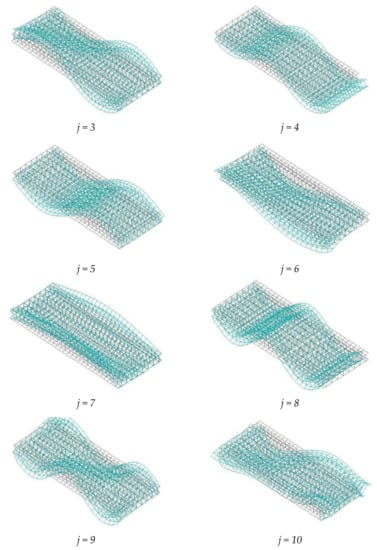 The first 10 natural frequencies are arranged in Table 2, and the natural modes are shown in Figure 3. The serial number of the natural mode is denoted by j.