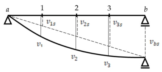 Consider a beam computational model of a bridge with three DOF (Figure 7). Assume that the right beam support (point b) moves in a vertical direction because of harmonic motion: