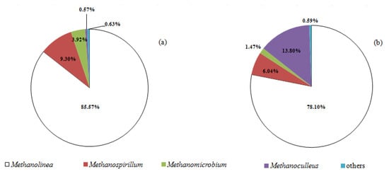 - Kim, J.; Kim, W.; Lee, C. Absolute dominance of hydrogenotrophic methanogens in full-scale anaerobic sewage sludge digesters. J. Environ. Sci. 2013, 25, 2272–2280. [Google Scholar] [CrossRef]