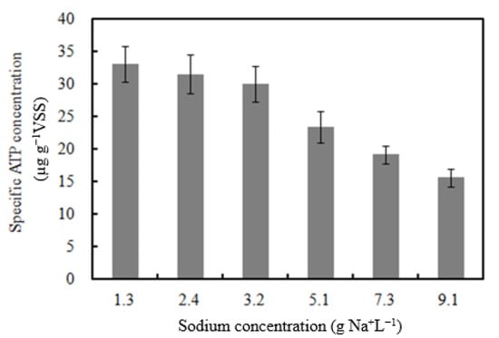 - Biomass activity decreased with Na content increased from 1.3 to 9.1 g Na+ L−1;