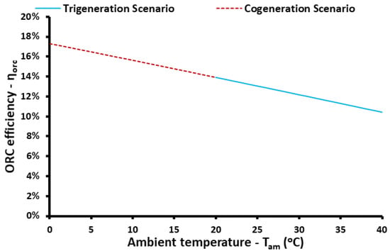 The impact of ambient temperature on ORC efficiency for both trigeneration and cogeneration scenarios.