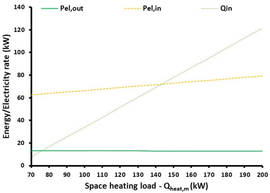 The examined system is able to operate with different combinations of loads, as was shown in Section 3.3. However, it is not possible to operate with all the possible operating scenarios due to energy balance restrictions. Specifically, the ambient source heat input acts as the counterbalance energy rate in order to provide the proper heating loads. This heat input (Qin) cannot be negative and this is a restriction of the present design.