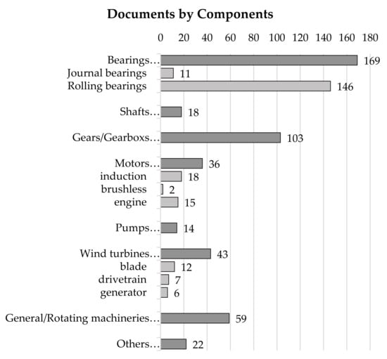 Condition monitoring techniques and methodologies are chosen and developed, depending on the characteristics and on the functioning of a specific component, more than on the final application field. According to this consideration, this review does not primarily focus on application fields, but the analysis grounds instead on the different machine components to which the condition monitoring is addressed, which are transversely widespread in different application fields. Eight categories were identified in the classification by components, representative of the intervention level, which is focused on the presented methods:
