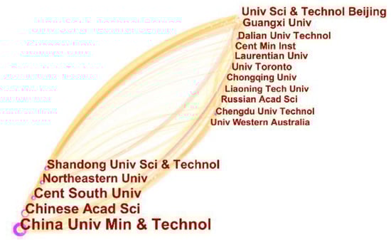 South Africa was one of the first countries to systematically carry out rockburst research. As early as the 1960s, the Rockburst Committee was established, and then research institutes, laboratories and management institutions were established to carry out rockburst research. In 1977, the International Society of Rock Mechanics established a special committee on rockburst. In 1984, Canada launched two 10-year deep mine rockburst-related research programs and introduced the geophysical method of seismic monitoring into prediction of rockburst. Rockburst research institutions have also been established in the USA, India, Poland and China. In 1995, China launched the “Ninth Five Year Plan” for tackling key scientific and technological problems, “Research on comprehensive technology for 3-million-ton intensive mining of kilometer deep mines”, and began research on rockburst mechanism and prediction. Figure 2 demonstrates the main scientific research institution of rockburst since the 21st century (data source: Web of Science, keywords: rockburst, rock burst). The sizes represent the rankings of the number of published papers. The number of papers published by Chinese academic circles ranks first.