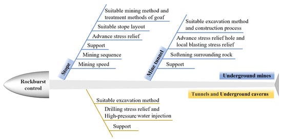 Although the main factors affecting the occurrence and severity of rockburst have been roughly clear, it is obviously difficult to reveal and unify the mechanisms of rockburst under different geological environments and excavation disturbances. Researchers try to explain formation conditions and development processes of rockburst from different angles by studying different engineering examples and physical model tests. Kaiser and Cai summarized the main factors influencing rockburst damage and its severity (See Figure 5) [].