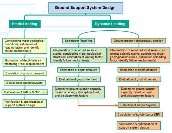 - Morissette, P.; Hadjigeorgiou, J. Ground support design for dynamic loading conditions: A quantitative data-driven approach based on rockburst case studies. J. Rock. Mech. Geotech. 2019, 11, 909–919. [Google Scholar] [CrossRef]