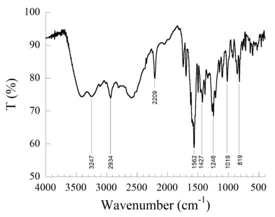 The FTIR spectrum of quinine-TCNQ CT complex: The FTIR spectra of quinine-TCNQ complex are shown in Figure 6. Comparison of the individual spectrum revealed significant band shifts after complex formation. The quinine OH stretching band previously located at 3285 cm−1 shifted to 3247 cm−1 in the Q-TCNQ complex. The 38cm−1 shift in the value of (O-H) band could be attributed to the stretching vibration of a proton attached to the donation site of the donor. Another significant change is observed for the cyano group (C☰N) which shifted from 2257 to 2179 cm−1. In addition, the band associated with the aromatic C=C stretch shifted from 1429 cm−1 to 1433 cm−1.