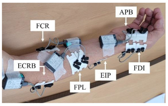 - Jarque-Bou, N.J.; Sancho-Bru, J.L.; Vergara, M. A Systematic Review of EMG Applications for the Characterization of Forearm and Hand Muscle Activity during Activities of Daily Living: Results, Challenges, and Open Issues. Sensors 2021, 21, 3035. [Google Scholar] [CrossRef]
