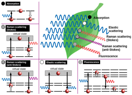 Despite the impressive progress in processing multispectral images, which made it possible to indirectly assess a plethora of ecosystem parameters and provided valuable applications in agriculture, the elastic spectroscopy alone is not capable of providing adequate technical solutions to many topical problems of plant sciences. By its nature, the spectra of elastically scattered light—photons that underwent rather simple and relatively weak interaction with matter—lack information about the biological sample state and composition. On frequent occasions, such a lack “cannot be remedied by any mathematical trickery” [95], and more complex optical phenomena must be brought into the scene to provide the required data reliability.